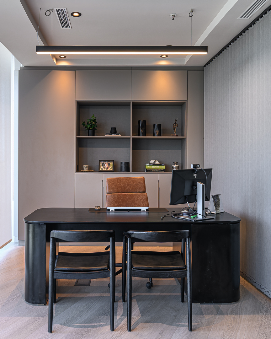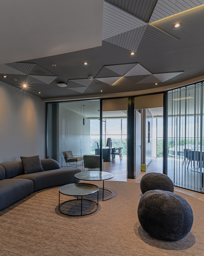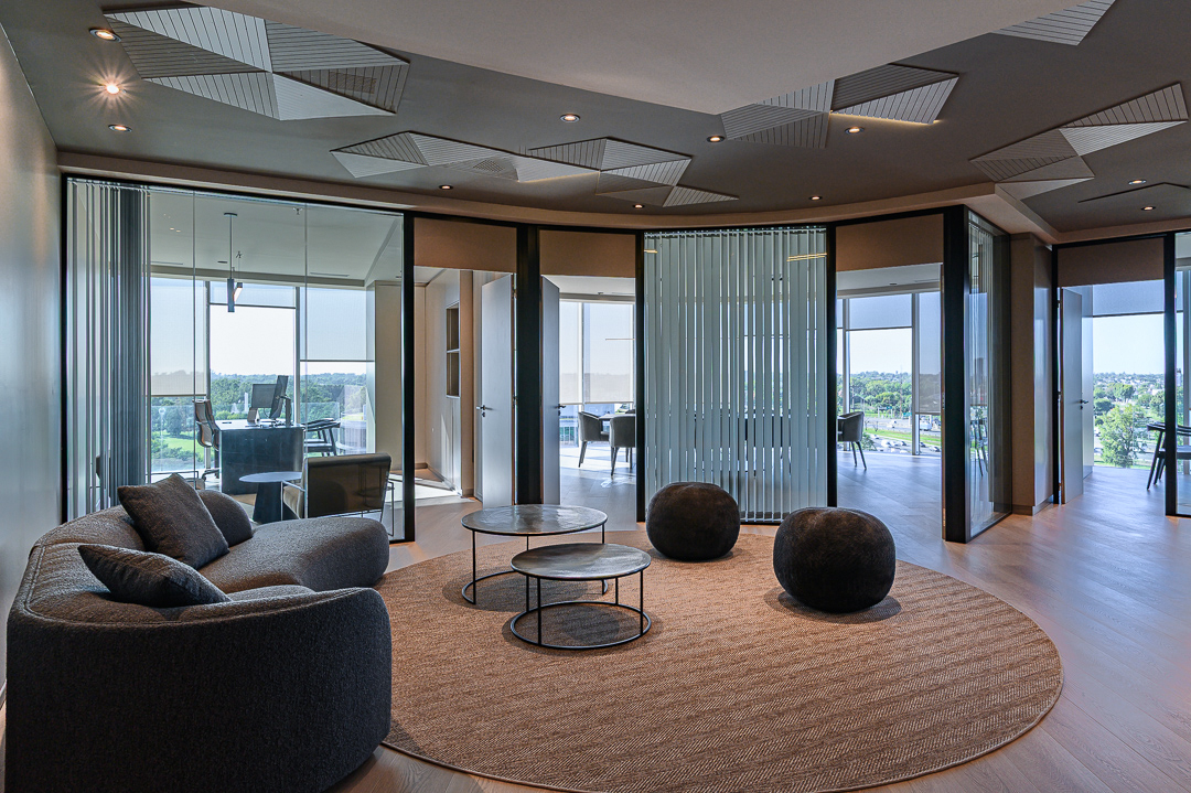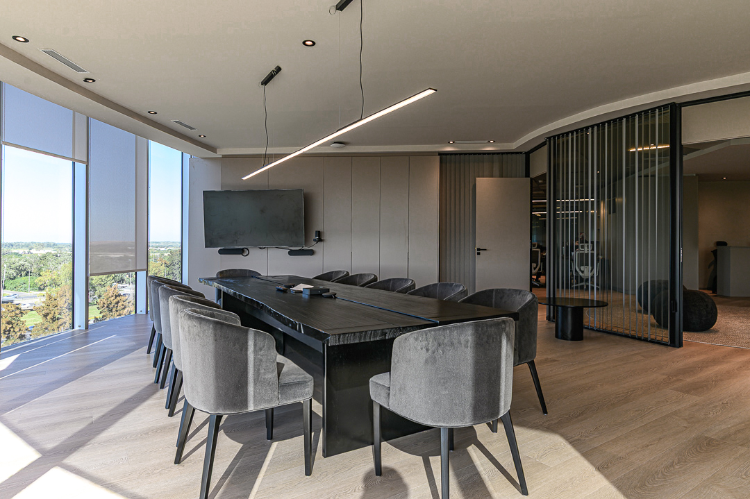 Los trabajos incluyeron la colocación de pisos, la ejecución de cielorrasos, el montaje de cerramientos especiales en aluminio y vidrio, la instalación de cortinas interiores y de fachada, trabajos de pintura, así como también la ejecución completa de las instalaciones y el equipamiento de un nuevo toilette y kitchenette.